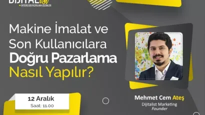 Webinar serimizin bu ayki konusu makine imalat ve son kullanıcılara doğru pazarlama stratejisi oluşturma. Ücretsiz gerçekleştireceğimiz webinara hemen kayıt olabilirsiniz.